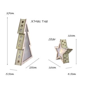 Perfect for creating a dazzling ambiance in any living area or bedroom. This X’Mas Wooden Tree/Star Light Decor from Enjoy Lighting is a warm and stylish option. It’s great for Christmas wedding & any occasions favor or centerpieces decoration at your home & room.